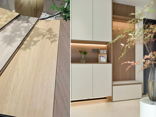 全數碼烘干,按科學組胚拼合,多層縱橫加錯結構,通過層層修芯多次復合定厚工藝,使產品兼具穩定抗變形能力與超強握釘力,同時甲醛釋放量更低。